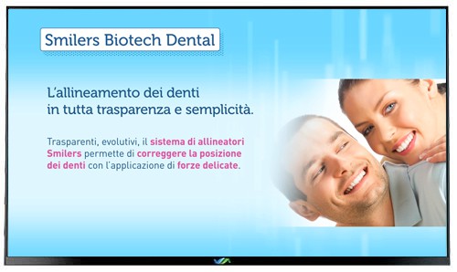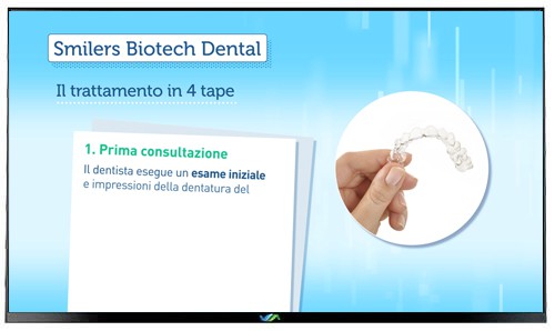Abbiamo sviluppato dei video in alta definizione e senza suono che permettono di spiegare semplicemente atti di ortodonzia con una TV in sala d’attesa.